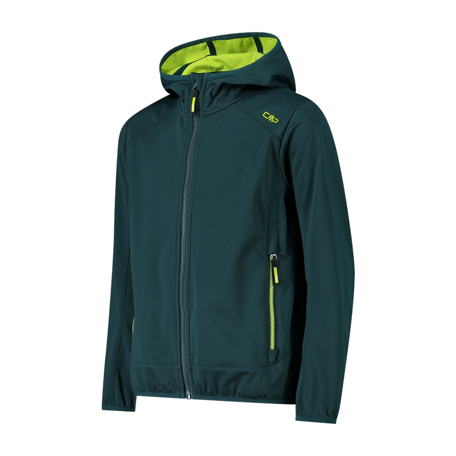 Chłopięca lekka kurtka softshell ze stałym kapturem. Funkcjonalny model, który dobrze sprawdza się na co dzień i podczas aktywności outdoorowych. Miękki materiał softshell zapewnia wygodę i ochronę w zmiennych warunkach. Membrana Clima Protect i hydrofobowe wykończenie pomagają chronić przed wilgocią i wiatrem, zachowując dobrą oddychalność. Stały kaptur zapewnia dodatkową osłonę przed chłodem i wiatrem.