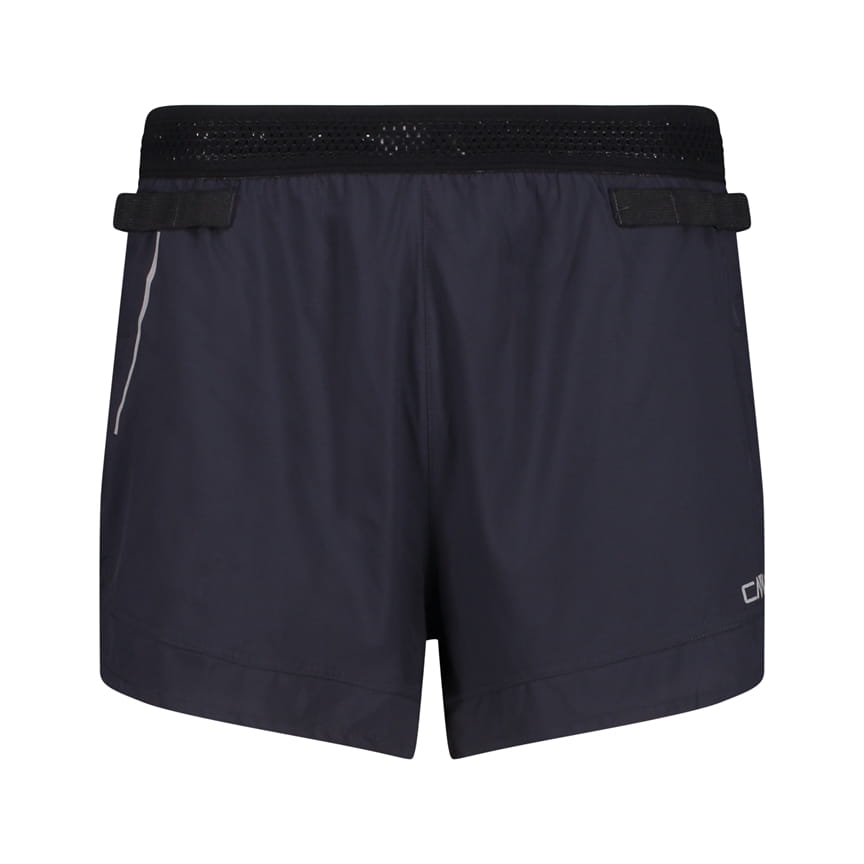 Męskie spodenki sportowe CMP z kolekcji Unlimitech to krótki model o luźnym, regularnym kroju i prostych nogawkach. Gładka, granatowo-czarna kolorystyka podkreśla techniczny charakter, a szeroki czarny pas w talii o perforowanej fakturze stabilnie układa się podczas ruchu. Z przodu znajduje się pionowy element odblaskowy oraz logo CMP na nogawce, a małe rozcięcie u dołu nogawki poprawia swobodę kroku. Materiał z dodatkiem elastanu pracuje z ciałem, a technologia Dry Function wspiera komfort w trakcie aktywności.
