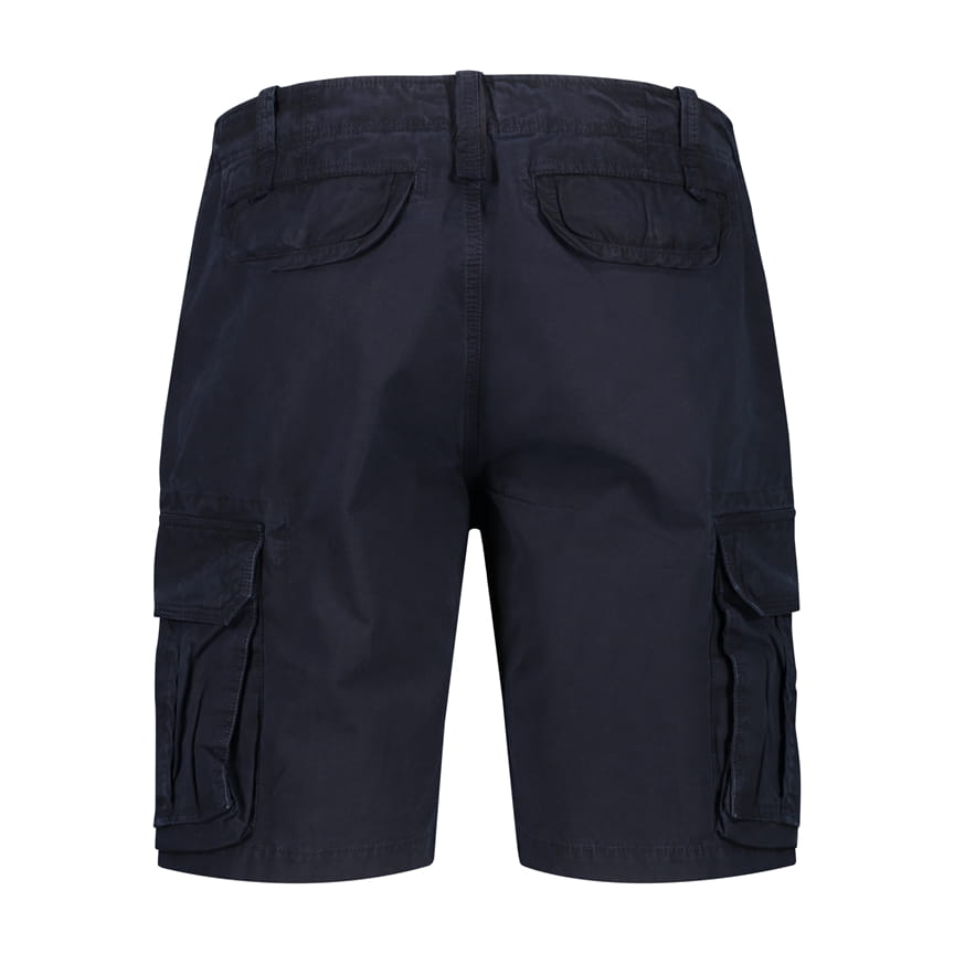 Granatowe spodenki męskie CMP 3U66477/N950 to klasyczne bermudy cargo o prostym kroju, ze średnim stanem i długością do okolic kolan. W pasie zastosowano zapięcie na guzik oraz szlufki, które ułatwiają noszenie z paskiem. Charakterystycznym detalem są dwie kieszenie cargo na udach z klapkami – praktyczne na drobiazgi podczas spacerów i aktywności na świeżym powietrzu. Gładka, bawełniana tkanina sprawia, że model dobrze wpisuje się także w codzienne stylizacje.