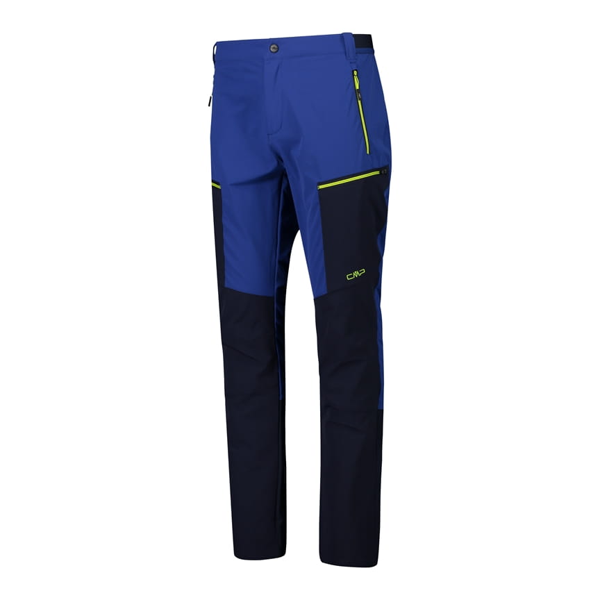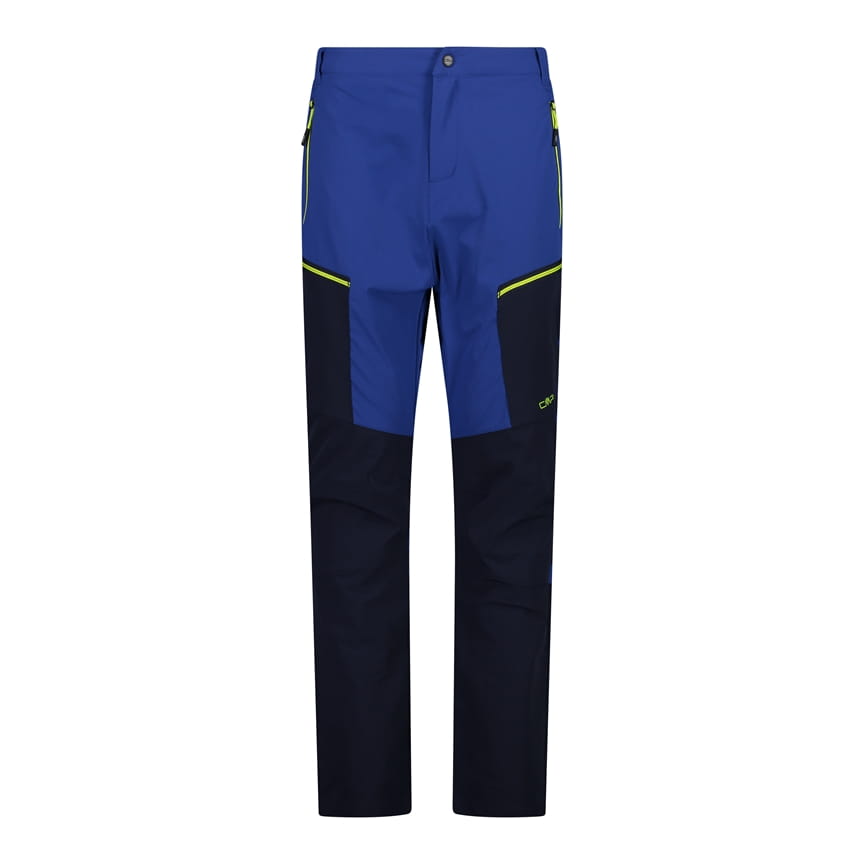 Outdoorowe spodnie męskie CMP z kolekcji Unlimitech to lekka, elastyczna propozycja na aktywność w plenerze. Model ma regularny krój oraz długie nogawki o prostym przebiegu, delikatnie zwężane ku dołowi. W pasie zastosowano zapięcie na guzik i szlufki na pasek. Praktycznym dodatkiem są dwie boczne kieszenie zapinane na zamki, wykończone neonową lamówką. Charakterystyczny wygląd podkreślają kontrastowe panele na udach i w dolnej części nogawek oraz niewielkie logo CMP na prawej nogawce.