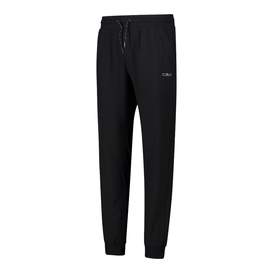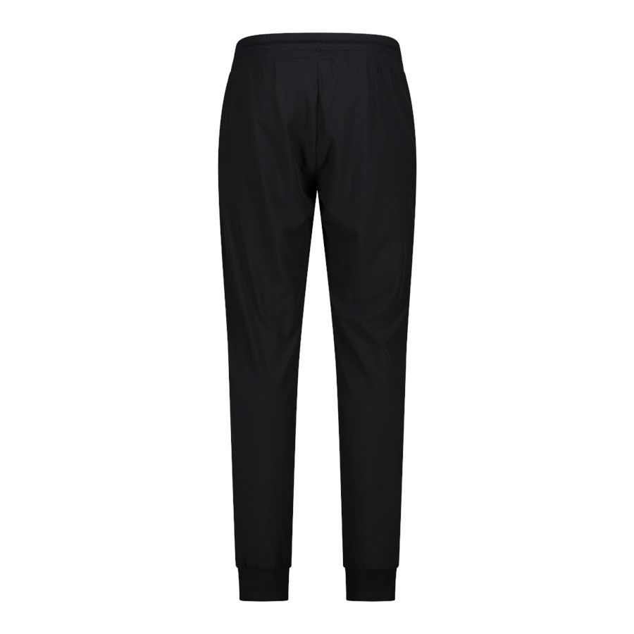 Czarne męskie spodnie dresowe CMP 33C6637/U901 to wygodny, gładki model o zwężanych nogawkach. Elastyczny pas z regulacją na sznurek ułatwia dopasowanie, a ściągacze przy kostkach porządkują dół nogawek podczas ruchu. Materiał z dodatkiem elastanu wspiera swobodę ruchów, a wykończenie Anti-Odor pomaga ograniczać powstawanie nieprzyjemnych zapachów w trakcie noszenia.