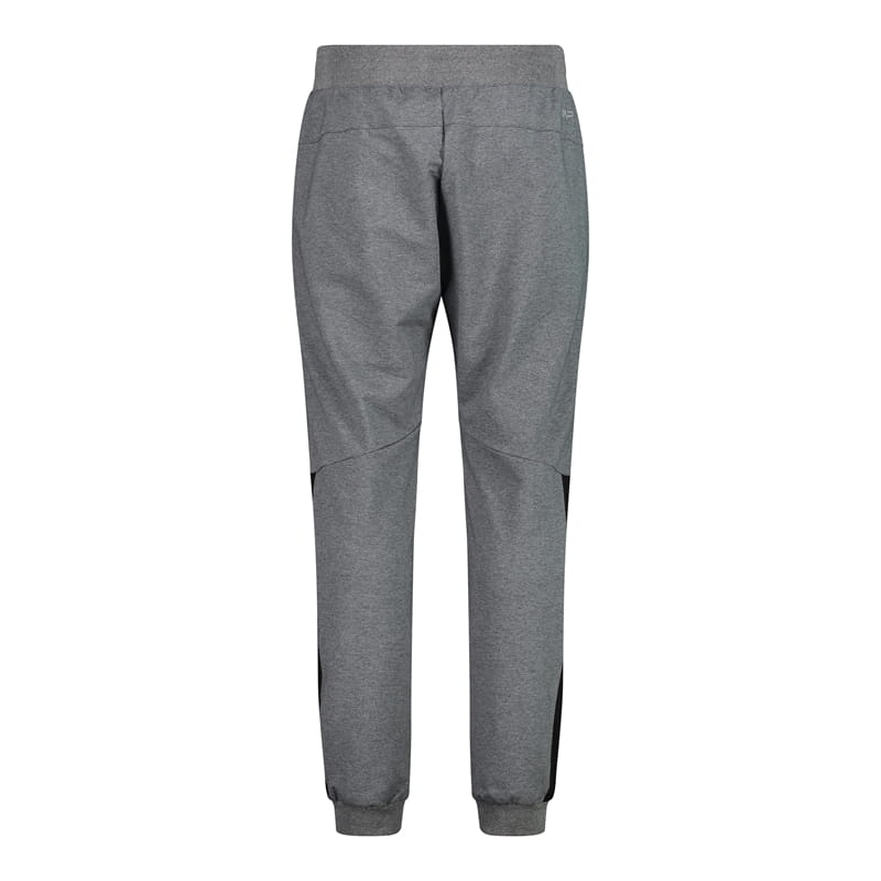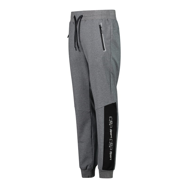 Te męskie spodnie dresowe CMP z kolekcji Leisure łączą codzienną wygodę z praktycznymi detalami. Mają elastyczny pas z troczkami, zwężane nogawki i ściągacze przy kostkach, dzięki czemu dobrze układają się na sylwetce i nie podwijają się w ruchu. Gładka, szara tkanina została uzupełniona czarnymi wstawkami w dolnej części nogawek po bokach, a dwie boczne kieszenie zapinane na zamki pomagają bezpiecznie schować drobiazgi. Całość dopełnia dyskretne logo CMP na bocznej wstawce.