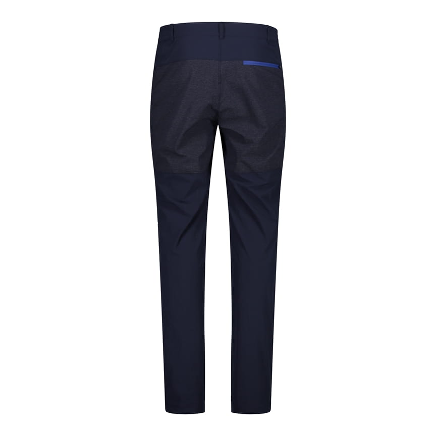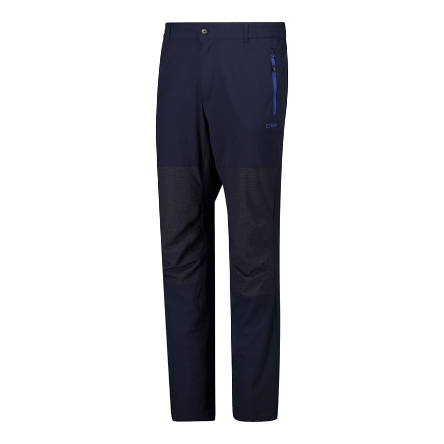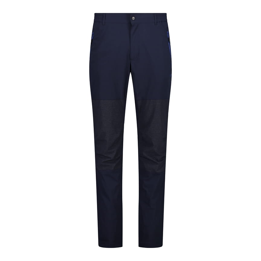 Te męskie spodnie outdoorowe CMP to wygodny model trekkingowy o klasycznym kroju z prostymi nogawkami. Elastyczny materiał 4 Way Stretch wspiera swobodę ruchu podczas marszu, a technologia Dry Function pomaga sprawniej odprowadzać wilgoć i przyspiesza schnięcie. W pasie zastosowano zapięcie na guzik oraz szlufki na pasek. Praktyczne kieszenie boczne zapinane na zamki ułatwiają bezpieczne przechowywanie drobiazgów, a wzmocnione, profilowane kolana z ciemniejszymi wstawkami zwiększają trwałość w newralgicznym miejscu.