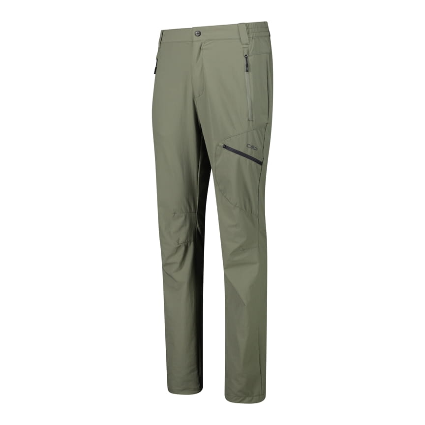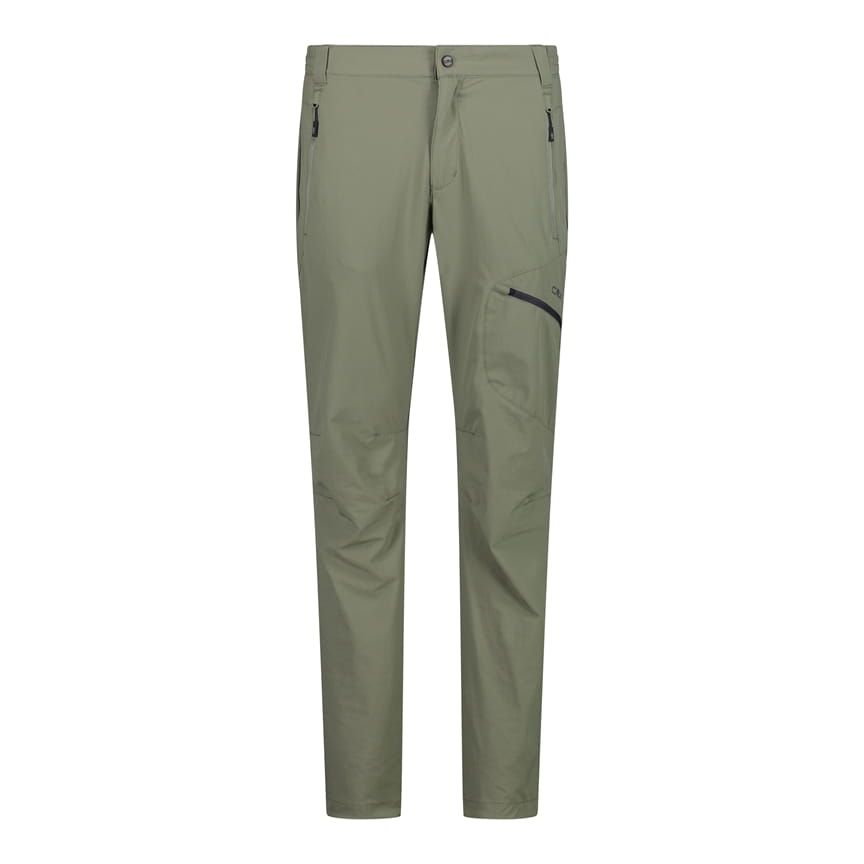 Zielone spodnie outdoorowe CMP 31T5147/F832 to lekka propozycja na aktywności w terenie. Długie nogawki mają prosty, lekko zwężany krój, a profilowane kolana wspierają swobodę ruchu podczas marszu. W pasie zastosowano zapięcie na guzik oraz szlufki na pasek. Praktyczne kieszenie na zamki – dwie boczne i jedna na udzie – pomagają bezpiecznie przechować drobiazgi w trakcie wędrówki. Materiał łączy poliamid z elastanem i pracuje z ruchem, a technologia Dry Function wspiera odprowadzanie wilgoci oraz szybsze schnięcie.