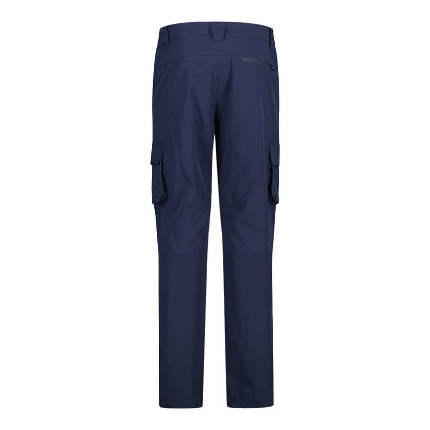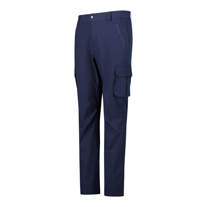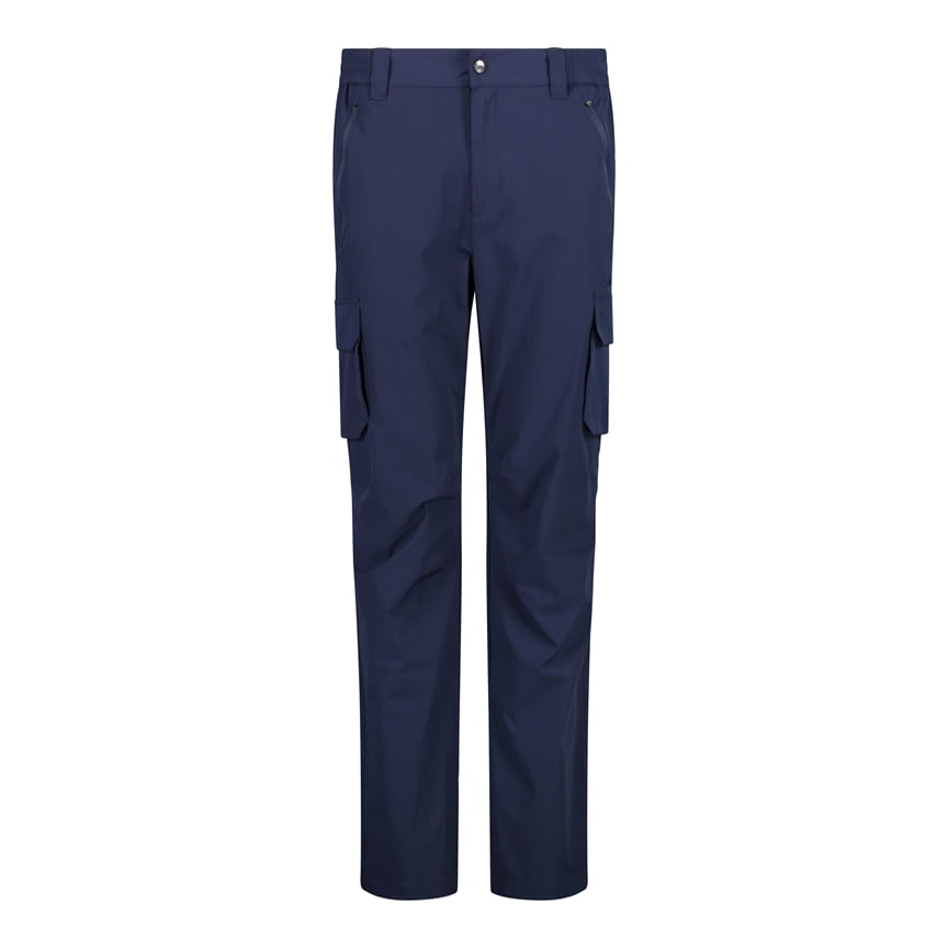 Granatowe spodnie męskie CMP z kolekcji Outdoor to wygodny model cargo na wycieczki i aktywność w terenie. Mają klasyczny stan, proste nogawki oraz zapięcie na guzik z rozporkiem na zamek. W pasie znajdują się szlufki na pasek. Układ kieszeni jest praktyczny: dwie kieszenie boczne z przodu oraz dwie kieszenie cargo na udach z klapkami. Elastyczna tkanina z dodatkiem elastanu wspiera swobodę ruchu, a technologia Dry Function pomaga utrzymać komfort podczas wysiłku.