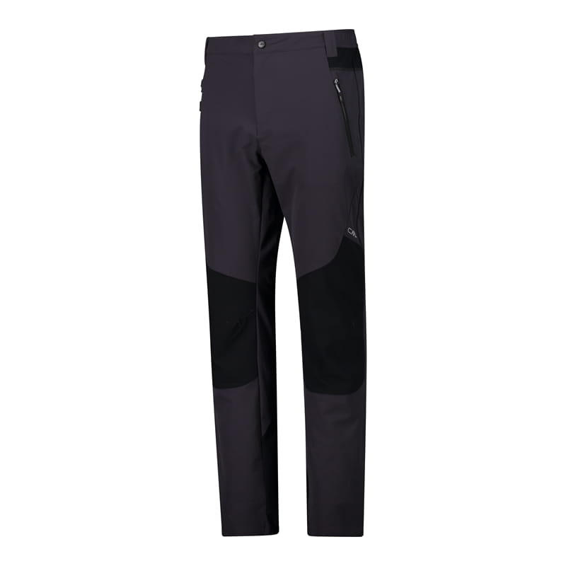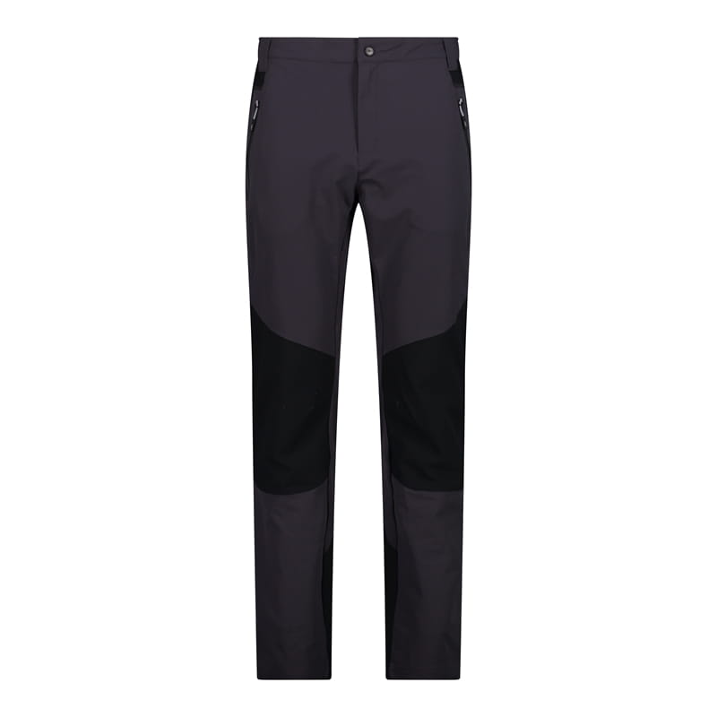 Elastyczne spodnie trekkingowe CMP z kolekcji Unlimitech w ciemnoszarej kolorystyce z czarnymi wstawkami (color blocking). Model ma regularny krój: proste nogawki lekko zwężają się ku dołowi, co dobrze układa się w ruchu. W pasie zastosowano zapięcie na guzik oraz szlufki na pasek. Dwie boczne kieszenie zapinane na zamki pozwalają wygodnie przechować najpotrzebniejsze rzeczy na szlaku. Za komfort podczas wysiłku odpowiada technologia Dry Function oraz rozciągliwość w 4 kierunkach.