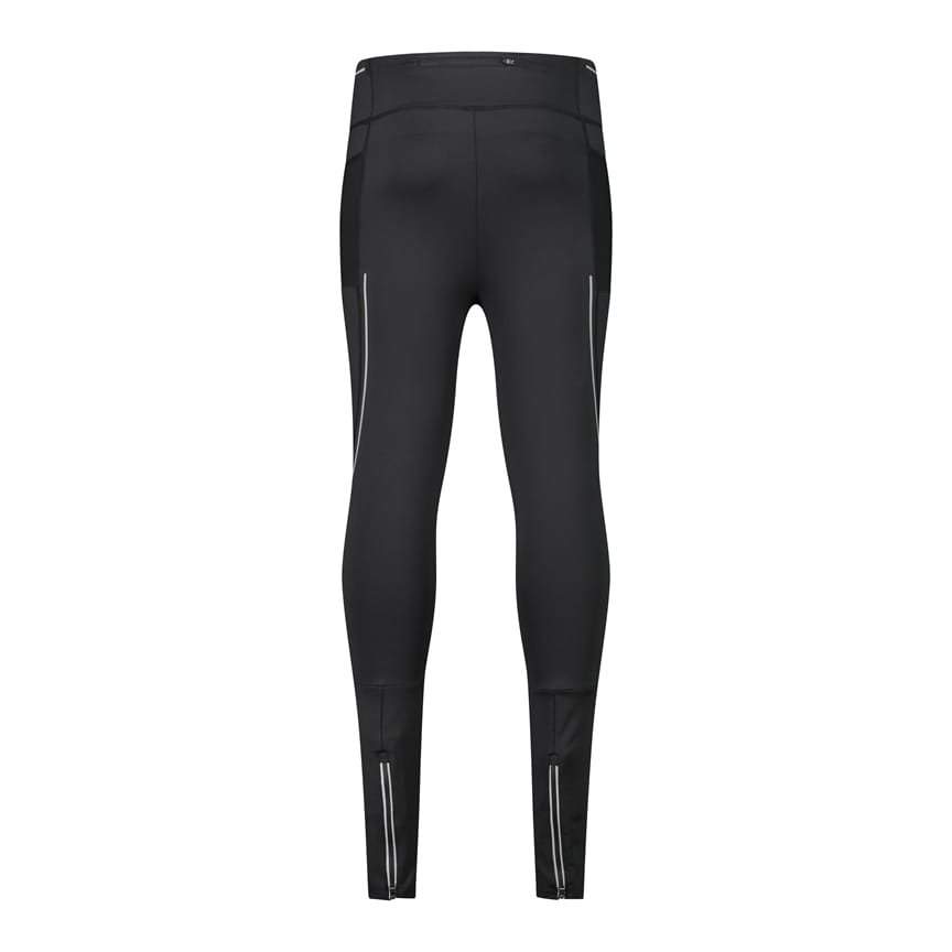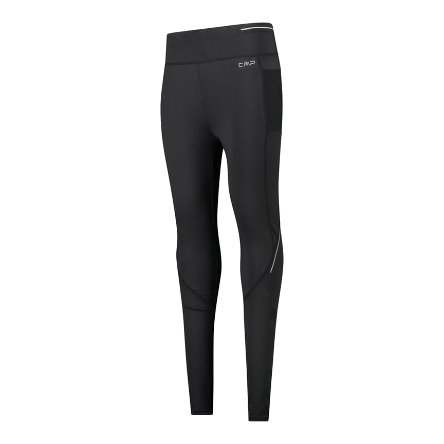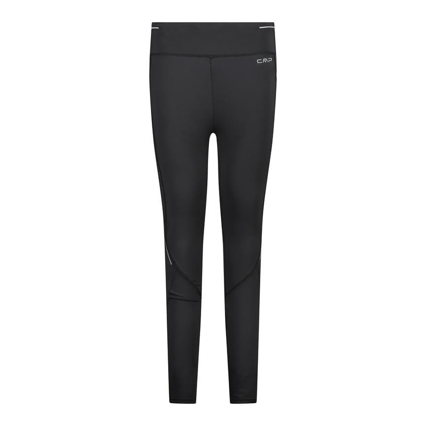 Czarne męskie spodnie biegowe CMP z linii Unlimitech mają formę dopasowanych legginsów z długą, zwężaną nogawką i szerokim pasem w talii. Elastyczna konstrukcja 4-Way Stretch wspiera swobodę ruchu podczas biegu, a panele w okolicy kolan oraz płaskie przeszycia pomagają utrzymać wygodę w trakcie intensywnego treningu. Drobne elementy odblaskowe umieszczone z tyłu zwiększają widoczność po zmroku, a całość uzupełnia subtelne logo CMP na biodrze.