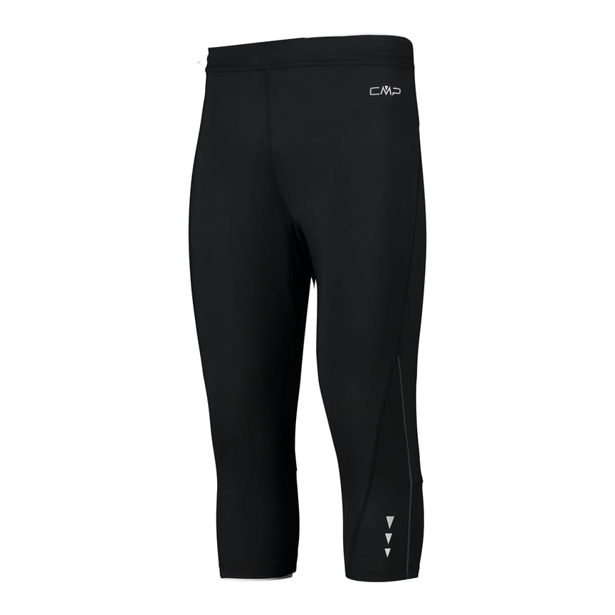 Dopasowane męskie legginsy sportowe CMP o długości 3/4 to wygodna warstwa na bieganie i trening. Gładki, elastyczny materiał dobrze pracuje w ruchu, a szeroki pas bez szlufek stabilnie układa się w talii. Drobne elementy odblaskowe przy dolnej części nogawek zwiększają widoczność w słabszym świetle, a małe logo CMP przy górnej krawędzi subtelnie podkreśla sportowy charakter modelu.