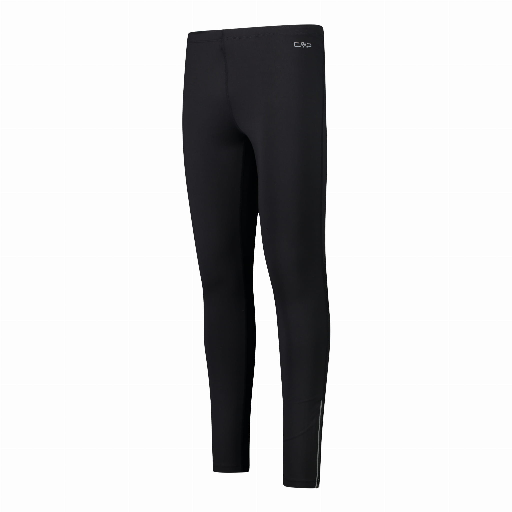 Czarne męskie legginsy sportowe CMP z kolekcji BIKE to dopasowany model z długimi nogawkami do kostek i wysokim stanem. Szeroki, elastyczny pas bez widocznego zapięcia stabilnie trzyma się na miejscu, a gładkie panele materiału i ergonomiczny krój wspierają swobodę ruchu podczas aktywności. W konstrukcji zastosowano także wstawkę z oddychającej siatki z tyłu kolan oraz rozpięcie u dołu nogawki, które ułatwia zakładanie. Całość uzupełniają elementy odblaskowe oraz dyskretne logo CMP.