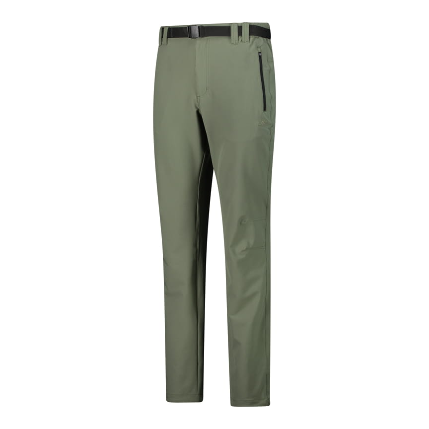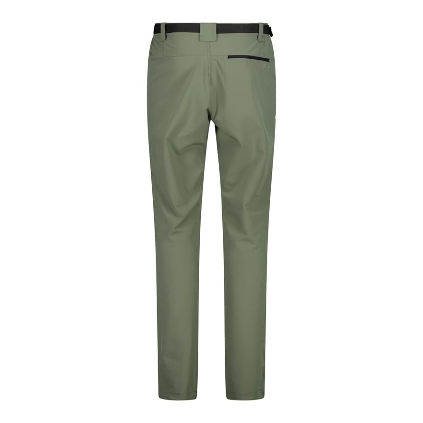 Zielone męskie spodnie outdoorowe CMP 3T51547/F832 to wygodny model o regularnym kroju i prostych nogawkach. Uszyto je z gładkiej, elastycznej tkaniny, która pracuje w ruchu, a w pasie zastosowano szlufki oraz dołączony czarny pasek z klamrą. Z przodu znajduje się rozporek, a dwie boczne kieszenie zapinane na zamek ułatwiają przechowywanie drobiazgów podczas aktywności. Materiał korzysta z technologii Dry Function, która wspiera odprowadzanie wilgoci i szybsze schnięcie.