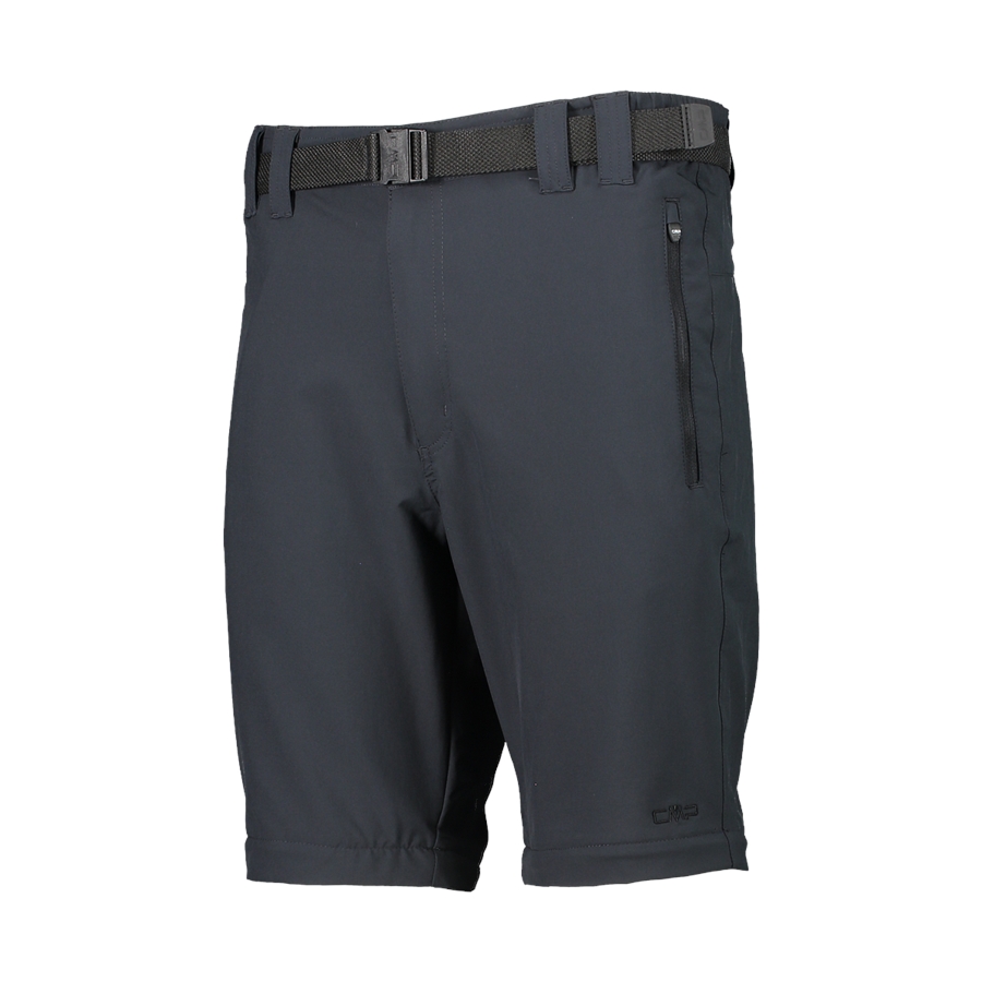 Te męskie spodnie trekkingowe CMP z serii Outdoor to praktyczny model na cieplejsze miesiące – dzięki zamkom na wysokości ud nogawki można odpiąć i szybko zmienić spodnie w szorty. Prosty krój i gładki, ciemnoszary materiał dobrze sprawdzają się w ruchu, a elastyczna tkanina 4-Way-Stretch wspiera swobodę podczas marszu. W pasie znajdują się szlufki oraz pasek z klamrą w komplecie. Dwie boczne kieszenie na suwak pomagają wygodnie przechować najpotrzebniejsze rzeczy w trakcie wycieczki.