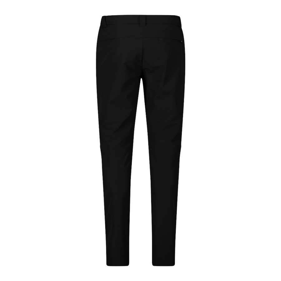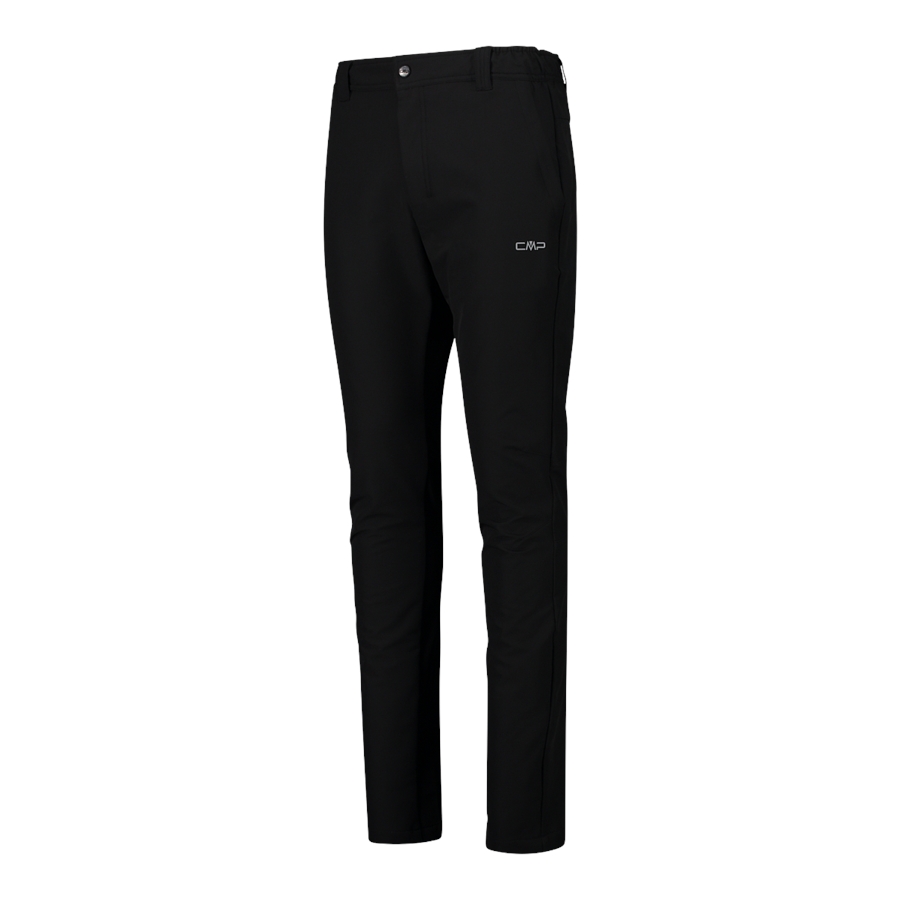 Czarne spodnie męskie CMP 32T2907/U901 to gładki, minimalistyczny model z elastycznego materiału, zaprojektowany do aktywności outdoorowych i codziennego noszenia w chłodniejszym sezonie. Długie nogawki mają prosty, lekko zwężany krój, a klasyczne zapięcie na guzik i rozporek z przodu nadają całości „miejski” charakter. W pasie znajdują się szlufki na pasek, a dwie kieszenie boczne pomagają mieć pod ręką najpotrzebniejsze drobiazgi. Od wewnątrz materiał jest czesany, co sprzyja przyjemnemu odczuciu ciepła.