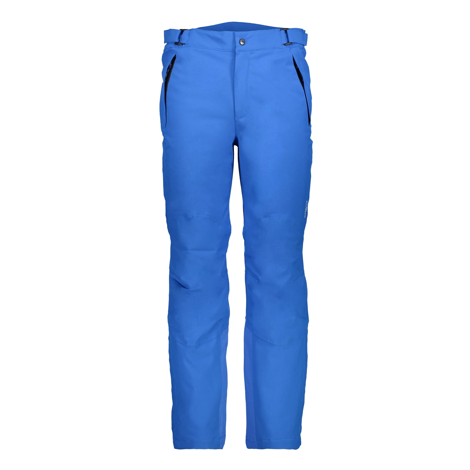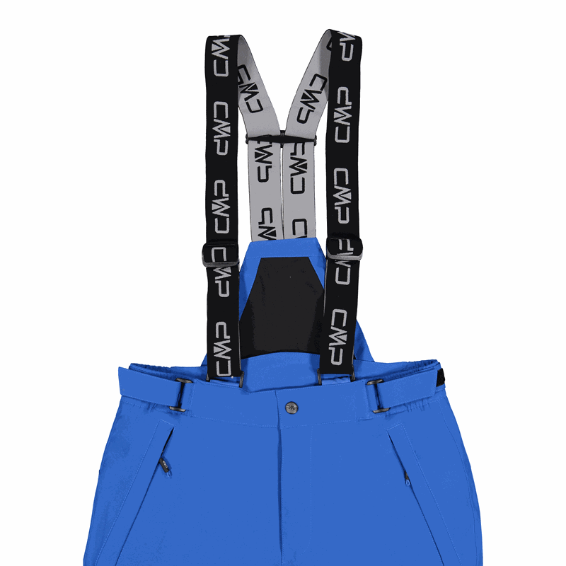 Niebieskie męskie spodnie narciarskie CMP z kolekcji Ski to techniczny model o prostych nogawkach i regularnym kroju, zaprojektowany z myślą o jeździe na stoku. Membrana Clima Protect® oraz w pełni podklejane szwy wspierają ochronę przed wilgocią, a hydrofobowe wykończenie PFC Free pomaga ograniczyć namakanie materiału. Konstrukcja 4-way stretch ułatwia swobodę ruchu, a profilowane kolana poprawiają komfort w trakcie aktywności. W pasie zastosowano zapięcie na guzik, szlufki na pasek oraz regulację na rzep. Dwie boczne kieszenie na suwaki pozwalają schować drobiazgi, a odpinane szelki stabilizują spodnie podczas jazdy. Dół nogawek jest wzmocniony i ma rozpięcie, a wewnątrz znajduje się elastyczny fartuch przeciwśnieżny z silikonowym nadrukiem antypoślizgowym. Za komfort termiczny odpowiada ocieplenie Feel Warm Flat 60 g.