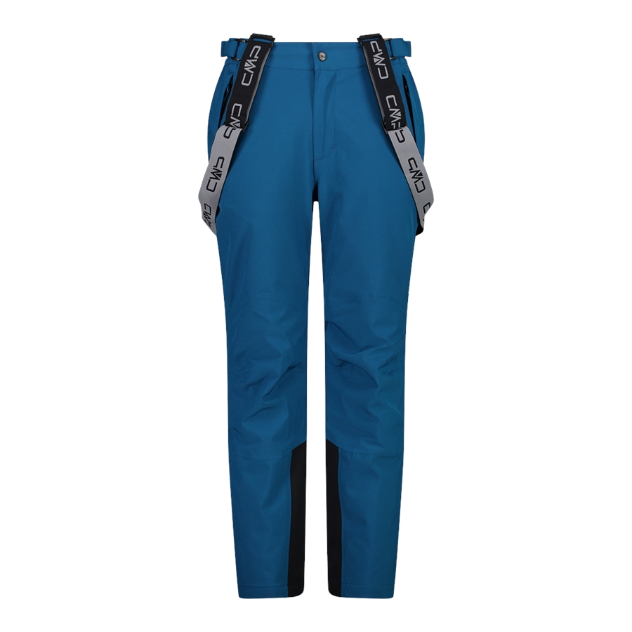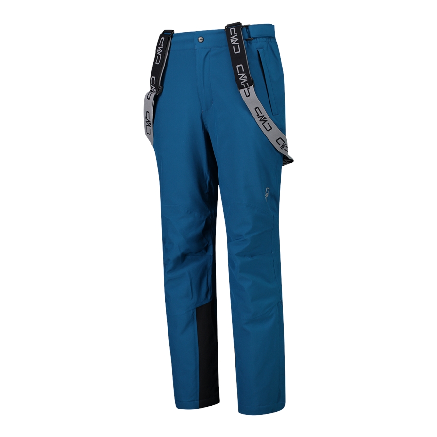Męskie narciarskie spodnie narciarskie na szelkach. Wygodny model, który dobrze sprawdza się na stoku i podczas zimowych aktywności. Membrana Clima Protect, hydrofobowe wykończenie i podklejane szwy pomagają chronić przed wilgocią i wiatrem, zachowując dobrą oddychalność. Zastosowane ocieplenie lub miękkie wnętrze pomagają utrzymać ciepło w chłodniejsze dni. Elastyczna konstrukcja i dopracowany krój zapewniają swobodę ruchów.
