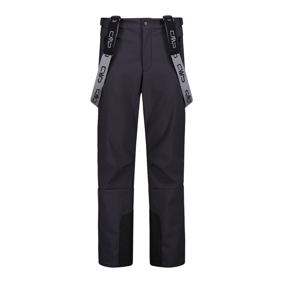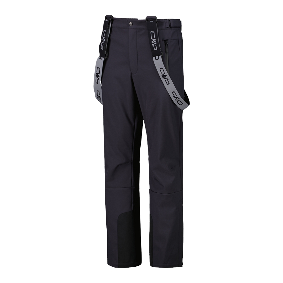 Męskie narciarskie spodnie narciarskie na szelkach softshell. Funkcjonalny model, który dobrze sprawdza się na stoku i podczas zimowych aktywności. Miękki materiał softshell zapewnia wygodę i ochronę w zmiennych warunkach. Membrana Clima Protect i hydrofobowe wykończenie pomagają chronić przed wilgocią i wiatrem, zachowując dobrą oddychalność. Elastyczna konstrukcja i dopracowany krój zapewniają swobodę ruchów.