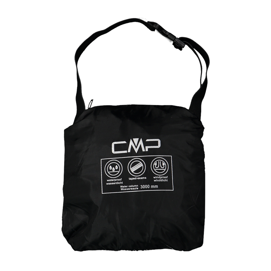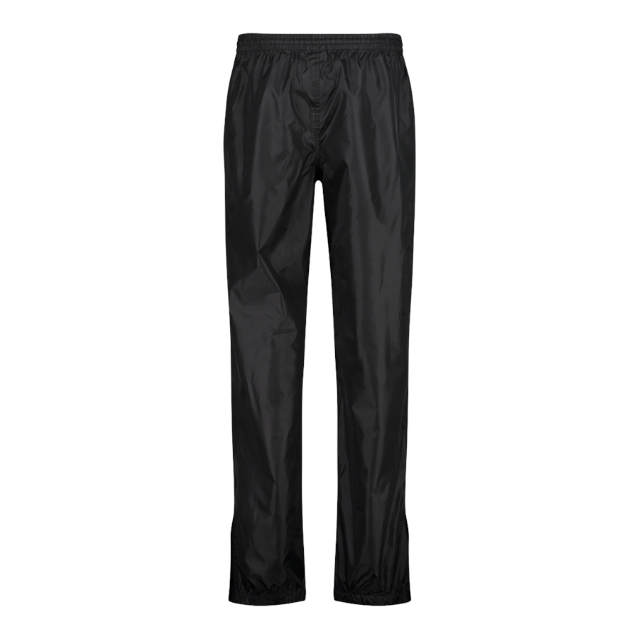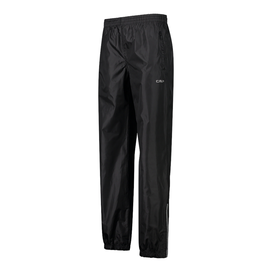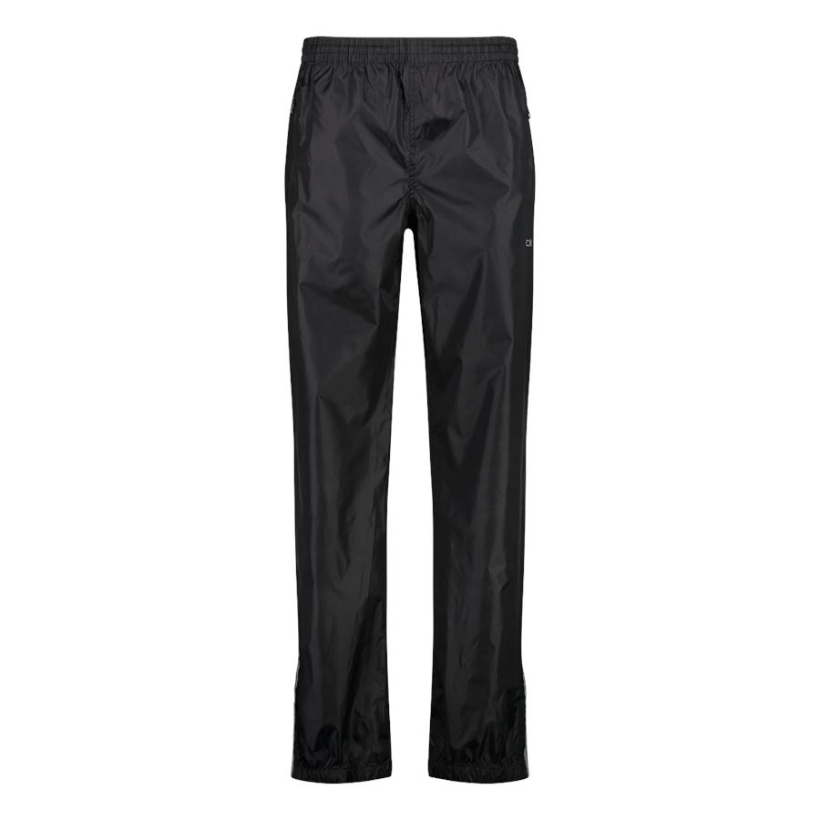 Czarne spodnie przeciwdeszczowe CMP z kolekcji Rainwear to lekka warstwa na mokrą pogodę, uszyta w całości z poliestru. Luźniejszy, prosty krój ułatwia założenie ich także na inne spodnie, a elastyczny pas wspiera wygodne dopasowanie. Dół nogawek wykończono elastycznie i uzupełniono o rozpięcie, co ułatwia zakładanie na buty. Model ma też odblaskowe detale oraz funkcję PackPocket, dzięki której spodnie można spakować do bocznej kieszeni.