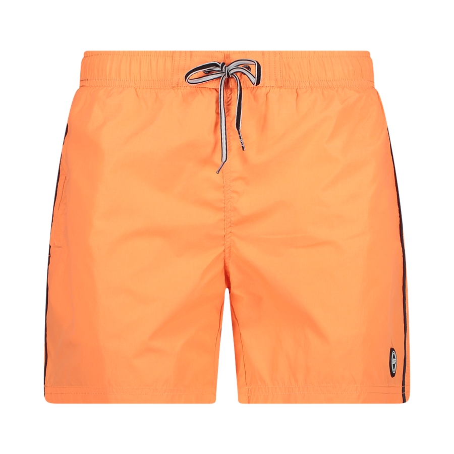 Pomarańczowe szorty męskie CMP 31R9017/C723 to wygodny model o prostych nogawkach i długości do połowy uda, zaprojektowany z myślą o swobodzie ruchu w ciepłe dni. Elastyczny pas z marszczeniem oraz kontrastowy sznurek pozwalają lepiej ustabilizować dopasowanie. Po bokach nogawek biegną pionowe, kontrastowe wstawki, które podkreślają sportową linię. Całość uzupełnia niewielkie logo przy dolnej krawędzi prawej nogawki.
